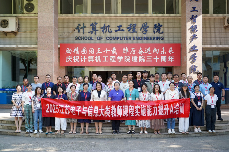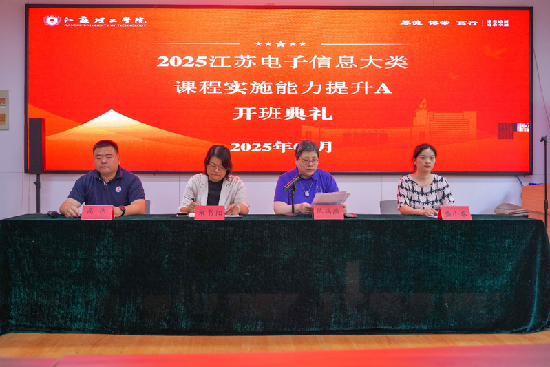 8月19日上午,2025江苏高职电子与信息大类教师课程实施能力提升A-国培在我校举行。全国重点建设职教师资培训基地办公室副主任陈瑞燕,计算机工程学院党委书记朱书阳,计算机工程学院培训与职业教育中心主任、项目负责人高伟,班主任盛小春以及江苏高职的骨干教师参加了开班典礼。开班仪式由高伟主持。