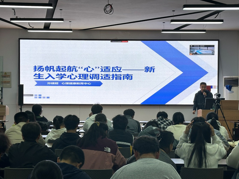 本次讲座通过线下会议室集中听讲、各晚自习教室实时直播的方式同步进行,确保了教育全覆盖。孙老师以《扬帆起航“心”适应——新生入学心理调试指南》为题,结合丰富的咨询案例,从环境适应、学业转变、人际交往及自我探索等新生普遍关注的维度出发,剖析了新生可能面临的心理困惑,提供了科学、实用且操作性强的心理调适方法与成长建议,引导同学们学会自我关怀,主动寻求支持。